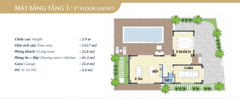 Thiết kế tầng 1 biệt thự Claring 1 – BRG Coastal City Đồ Sơn