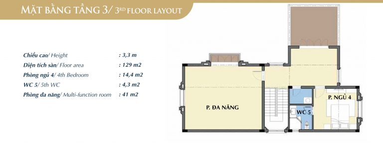 Mặt bằng thiết kế tầng 3 biệt thự Claring 1 – BRG Coastal City Đồ Sơn