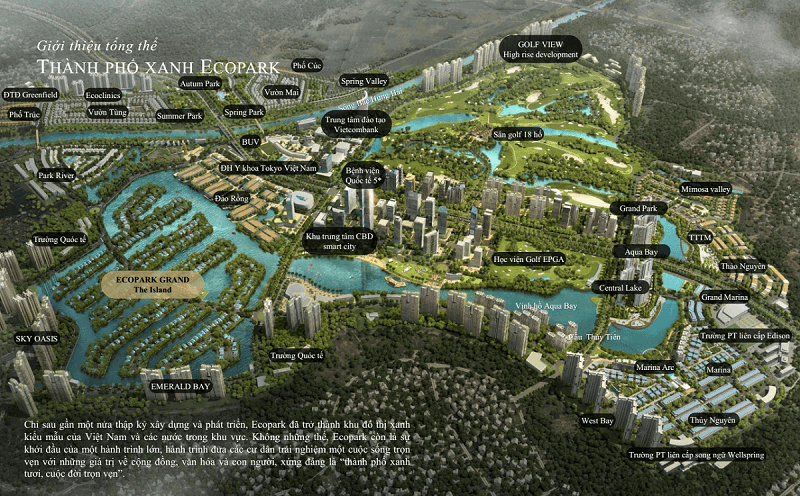 Ecopark Hưng Yên được đánh giá là một trong những khu đô thị đáng sống nhất Việt Nam hiện nay. Với phương châm trở thành một thành phố cây xanh lớn nhất nước, Ecopark không chỉ là một khu dân cư, mà còn là một khu đô thị sinh thái xanh với đầy đủ tiện ích, dịch vụ hiện đại bậc nhất.