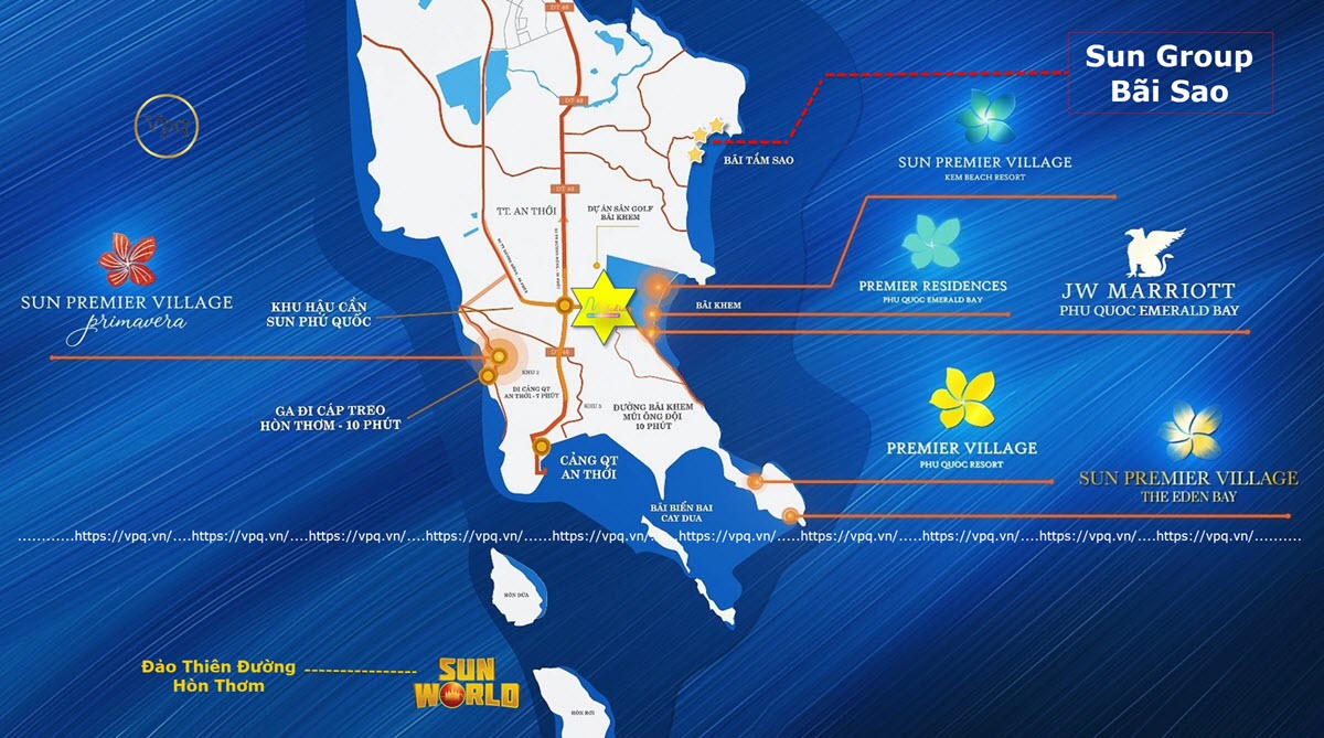Điển hình như Bãi Kem, bãi biển kế cận Bãi Sao chỉ cách 3km, đã chuyển mình mạnh mẽ từ một làng chài trở thành điểm đến nức danh trên bản đồ du lịch thế giới sau hơn nửa thập kỷ kiến tạo của Sun Group. Đến Bãi Kem hiện nay du khách có nhiều lựa chọn cao cấp như Khu nghỉ dưỡng JW Marriott Phu Quoc Emerald Bay, Sun Premier Village The Eden Bay hay khu đô thị nghỉ dưỡng phong cách nhiệt đới Sun Tropical Village… Một sinh thái du lịch nghỉ dưỡng – giải trí – bất động sản cao cấp được đầu tư bài bản bởi CĐT Sun Group có tiềm lực tài chính mạnh và có tầm nhìn dài hạn.